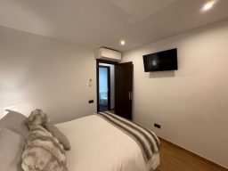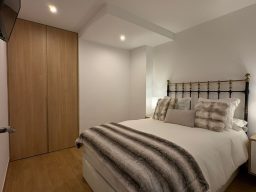 La habitación dispone de cama doble, dos mesitas de noche, armario, closet, televisión, aire acondicionado y Apto nuevo. Al ser interior, ofrece un ambiente silencioso y perfecto para el descanso. El piso es muy luminoso, moderno y cuidado con altos estándares de calidad.